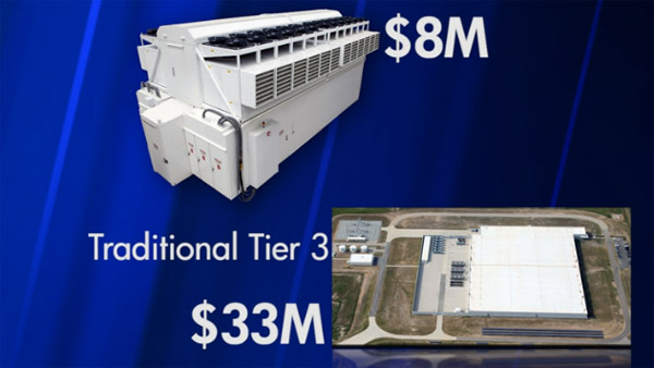 As has become the norm for modular data center vendors, the emphasis is on energy efficiency (up to 95 percent energy savings), rapid deployment (12 weeks vs 2 years) and huge cost savings, both CAPEX and OPEX. Just look at the screengrab above. Those numbers make it hard for any company considering a data center build to discount modular data centers.